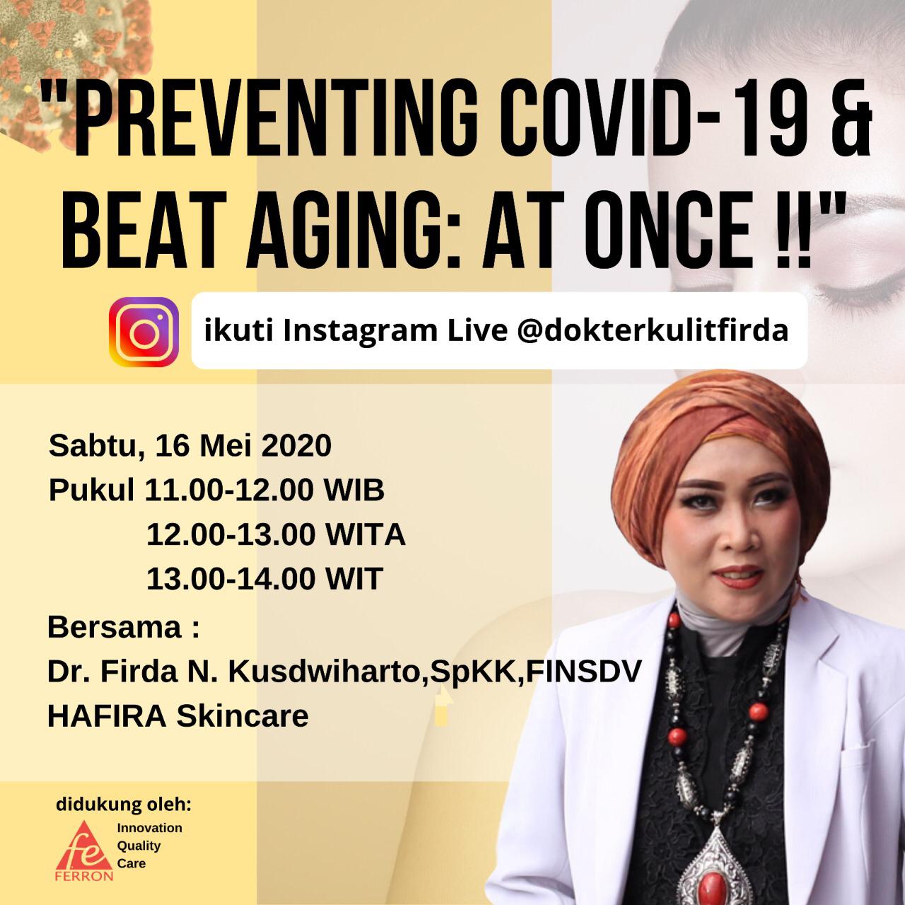 Dengan tema "PREVENTING COVID-19 & BEAT AGING : AT ONCE!!" bersama dr. Firda N. Kusdwiharto, SPKK,FINSDV yang akan membahas tentang tips sehat, cantik, dan bugar disaat pandemi Covid-19